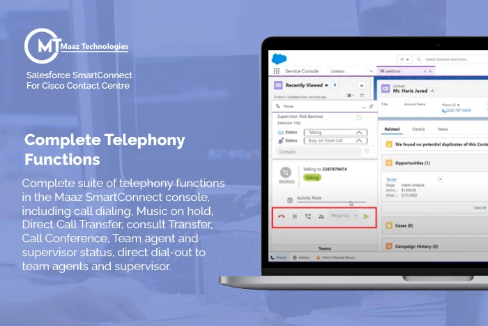 Maaz Technologies SmartConnect supports Salesforce integration with Webex, UCCX, UCCE, PCCE 11.x, and above