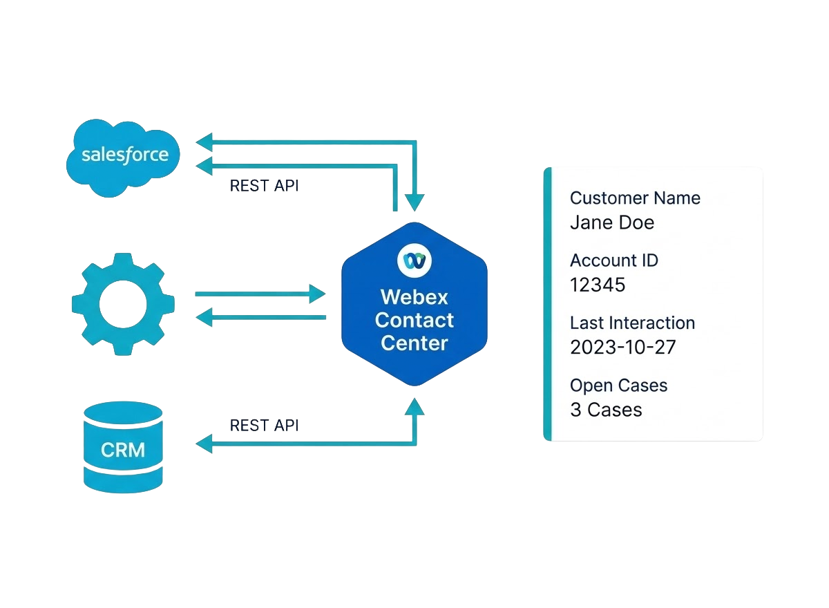 Enterprise contact centers depend on CRM data at the point of agent interaction. Screen pop on inbound contact, interaction history visibility, case creation automation, and post call disposition synchronization are capabilities that require careful configuration during implementation not ad hoc integration after go live.